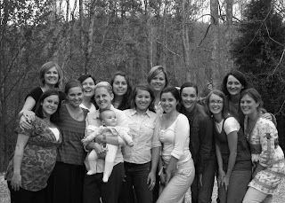 Jess, Julie, Me, Amy, Jenny (with Reid), Kristin, Larissa, Jeannie, Melissa, Audra, Melissa, Cherilyn, and Katie (and Kristen, who was in England).